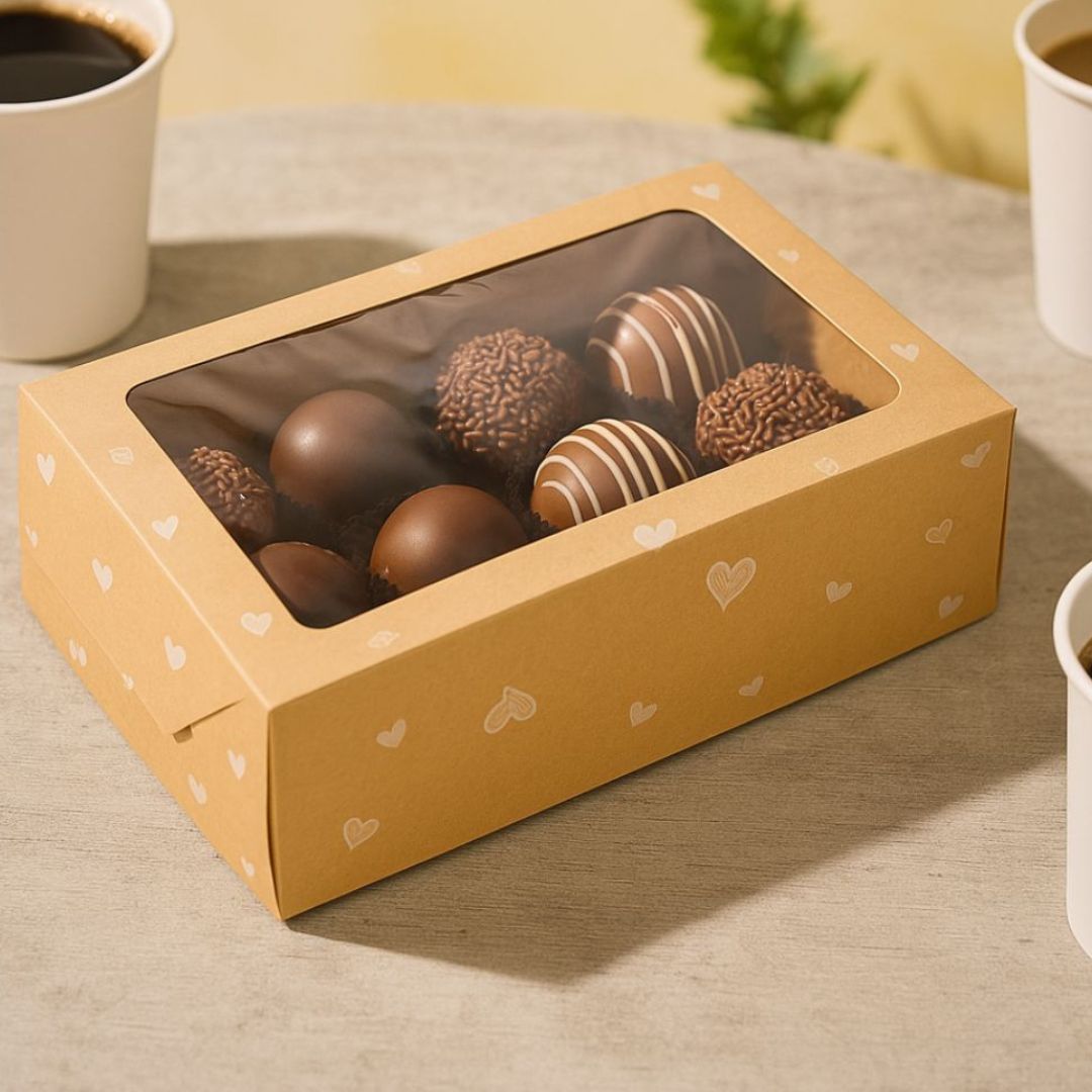 CAJA CARTULINA CHO MULTIUSO KRAFT CORAZONES CON VISOR (17.7*26*8.7CM) *25UNID